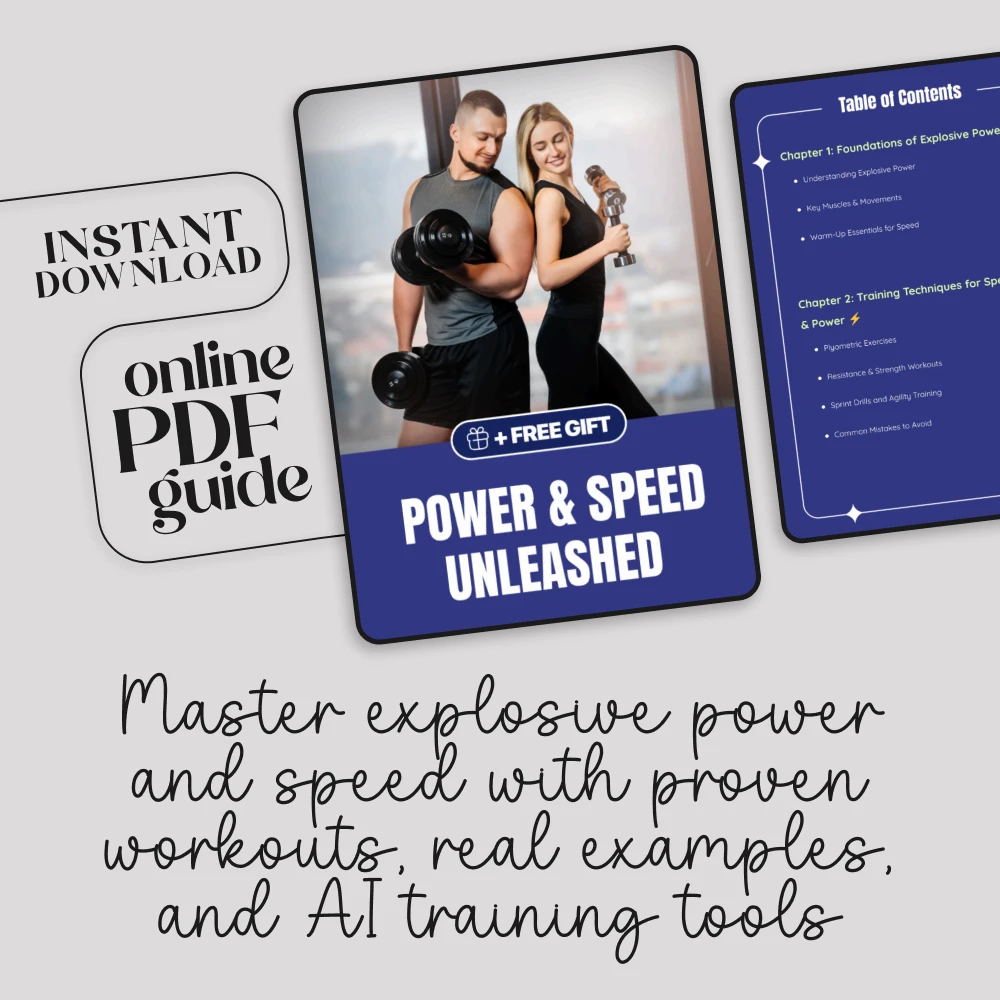 Unlock your body’s true potential with ⚡ Power & Speed Unleashed, the ultimate digital guide designed to transform the way you train. Whether you’re an athlete, fitness enthusiast, or simply someone who wants to move faster and stronger, this comprehensive resource equips you with practical tools and step-by-step strategies for training for explosive power and speed. Unlike generic fitness eBooks, this guide combines cutting-edge workout methods, inspiring case studies, and AI-powered prompts to give you a smarter, more efficient training experience.