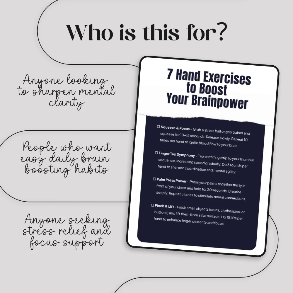 Download the 7 Hand Exercises to Boost Your Brainpower checklist now and take the first step toward sharper focus and stronger mental clarity. Your brain deserves it—start today and feel the difference with every squeeze, tap, and roll.