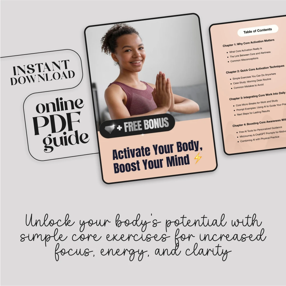 Are you looking to improve both your physical health and mental clarity? The “Activate Your Body, Boost Your Mind” digital guide is your ultimate resource for unlocking the power of core activation. Whether you’re working from home, studying, or simply looking for ways to enhance your daily routine, this guide is designed to help you achieve lasting results. Packed with practical exercises, expert advice, and AI-driven insights, you’ll learn how to activate your core and boost your mental alertness wherever you are.