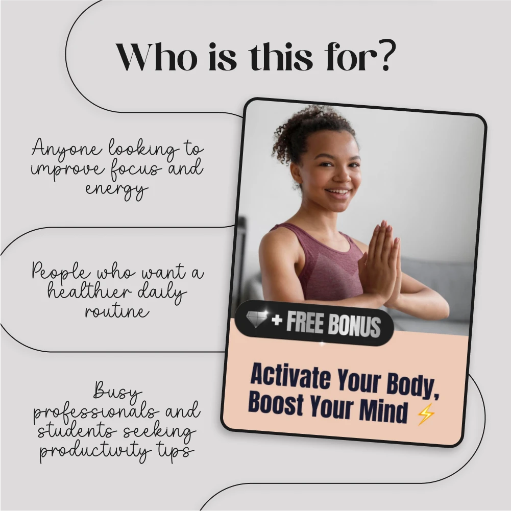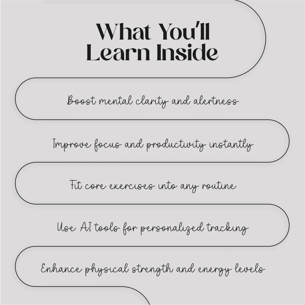 Activate Your Body, Boost Your Mind isn’t just another fitness guide – it’s a comprehensive, easy-to-follow plan that combines physical exercise with the latest in AI tools to help you achieve real results. What makes this guide stand out is its unique integration of core activation with mental clarity practices, making it a versatile solution for anyone looking to improve focus, energy, and well-being.