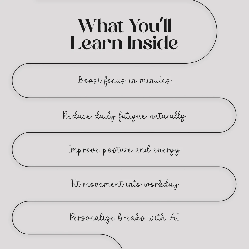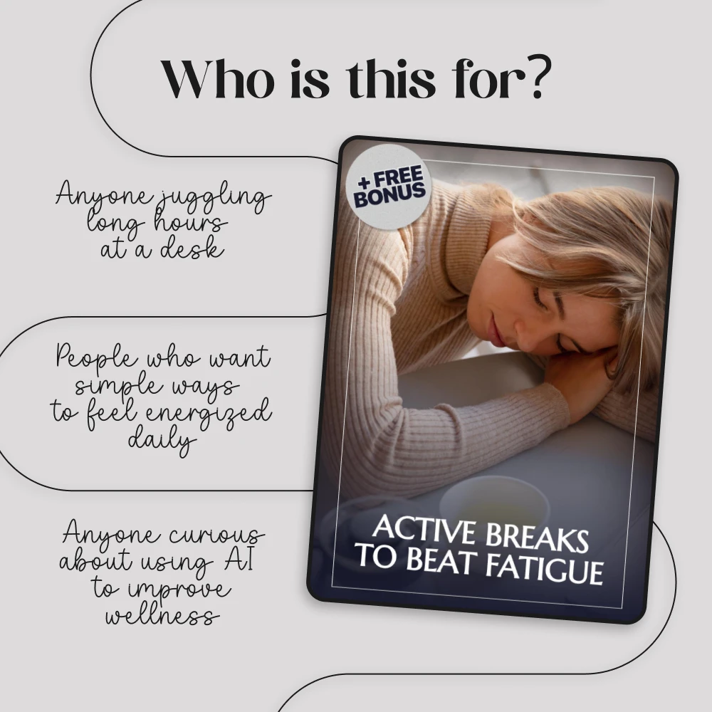 Unlike generic wellness advice, this guide combines science-backed strategies, real-life case studies, and AI-powered tools to help you design active breaks that truly work for your body and mind. It’s simple, actionable, and flexible—tailored for busy people who need quick solutions without sacrificing results.