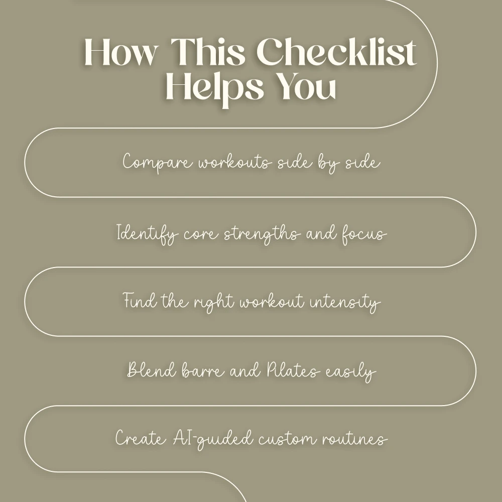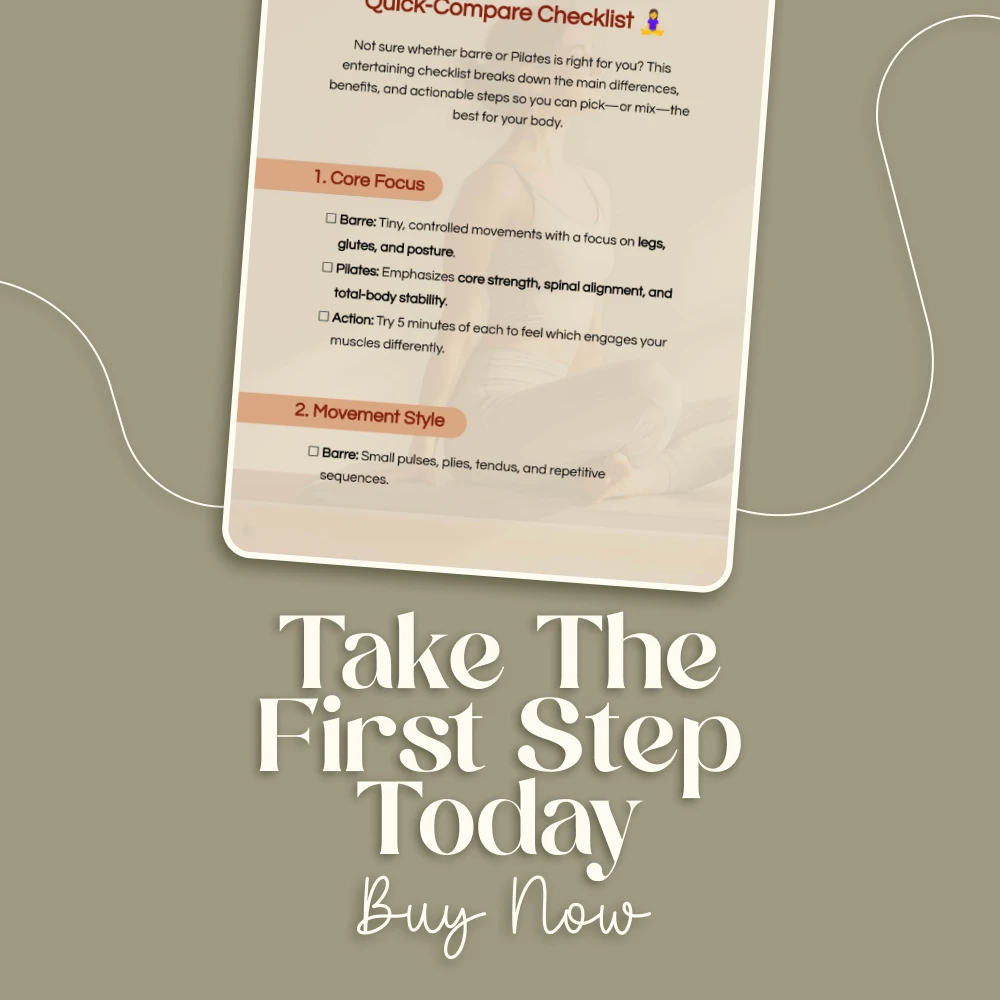 Stop wondering and start moving with confidence. Download the Barre vs Pilates: Quick-Compare Checklist now and see which workout—or combination—fits your lifestyle best.