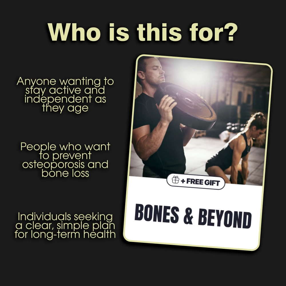 This guide is perfect for anyone who wants to invest in their future self. It’s for individuals noticing the first signs of aging, post-menopausal women concerned about bone density, fitness enthusiasts looking to add a longevity focus to their training, and anyone ready to take a proactive, science-backed approach to their health. If you value your independence and want to stay active, strong, and vibrant for decades to come, this is the resource you’ve been searching for.