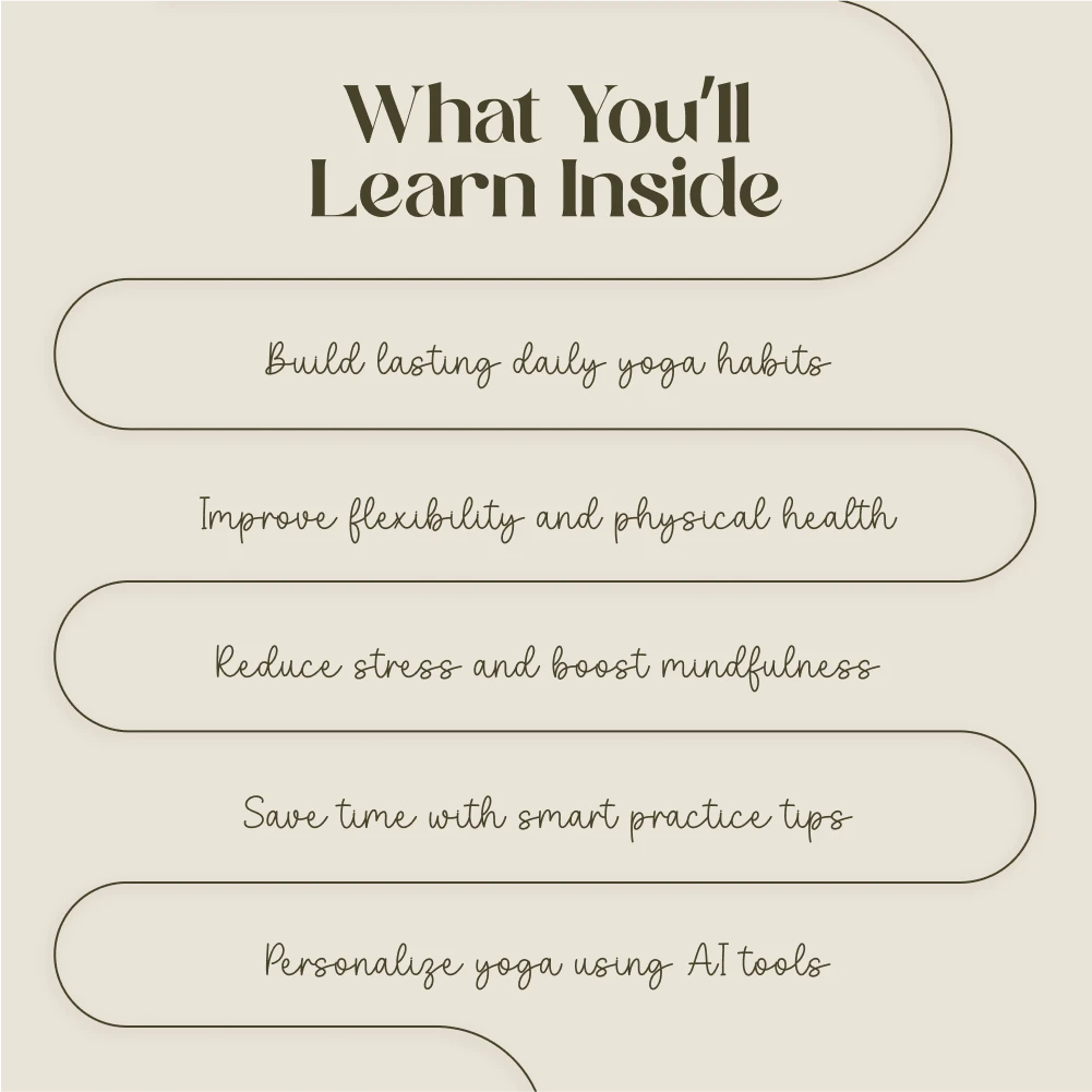 - Chapter 1: Why Daily Yoga Matters – Discover mental, emotional, and physical health benefits, plus how AI can support your practice.