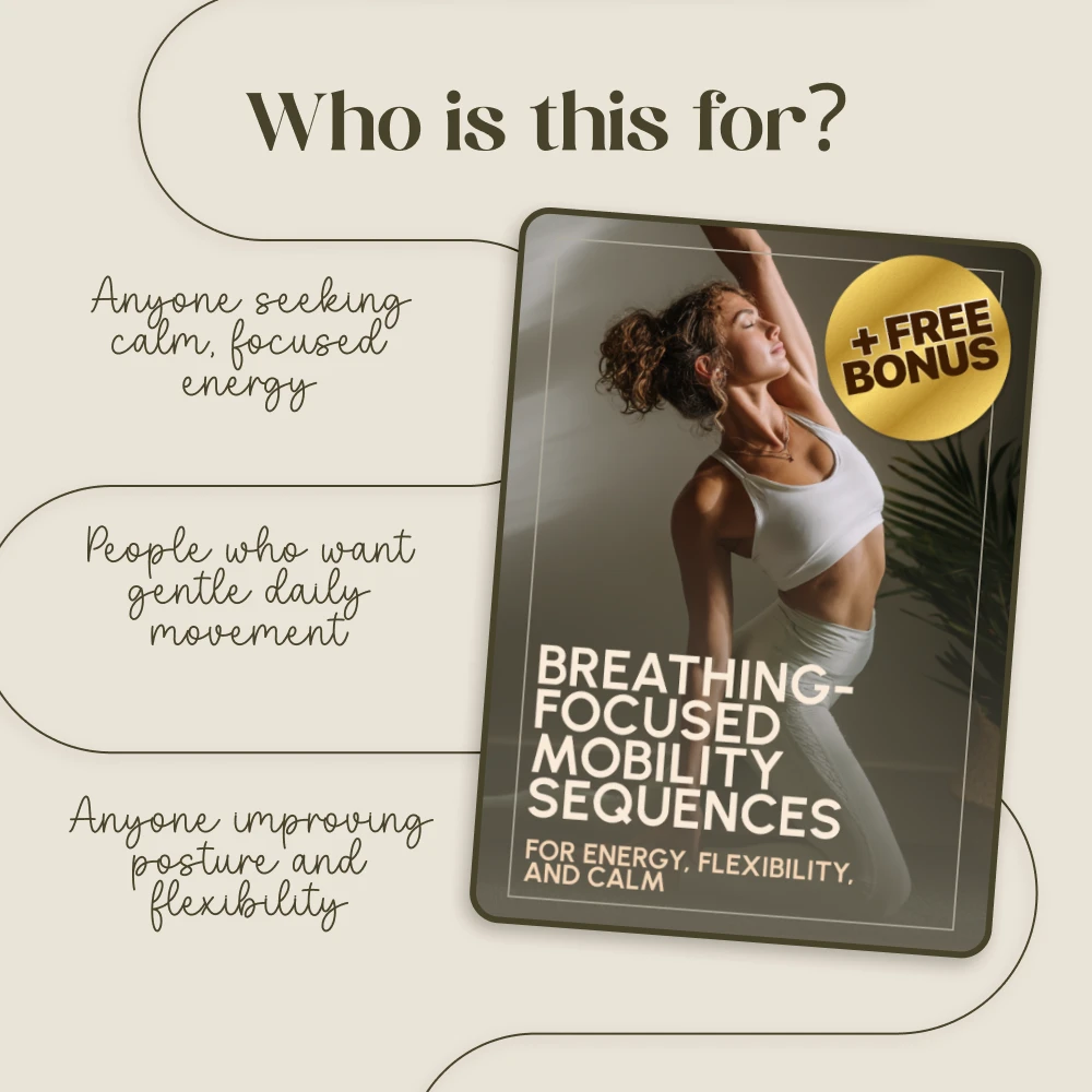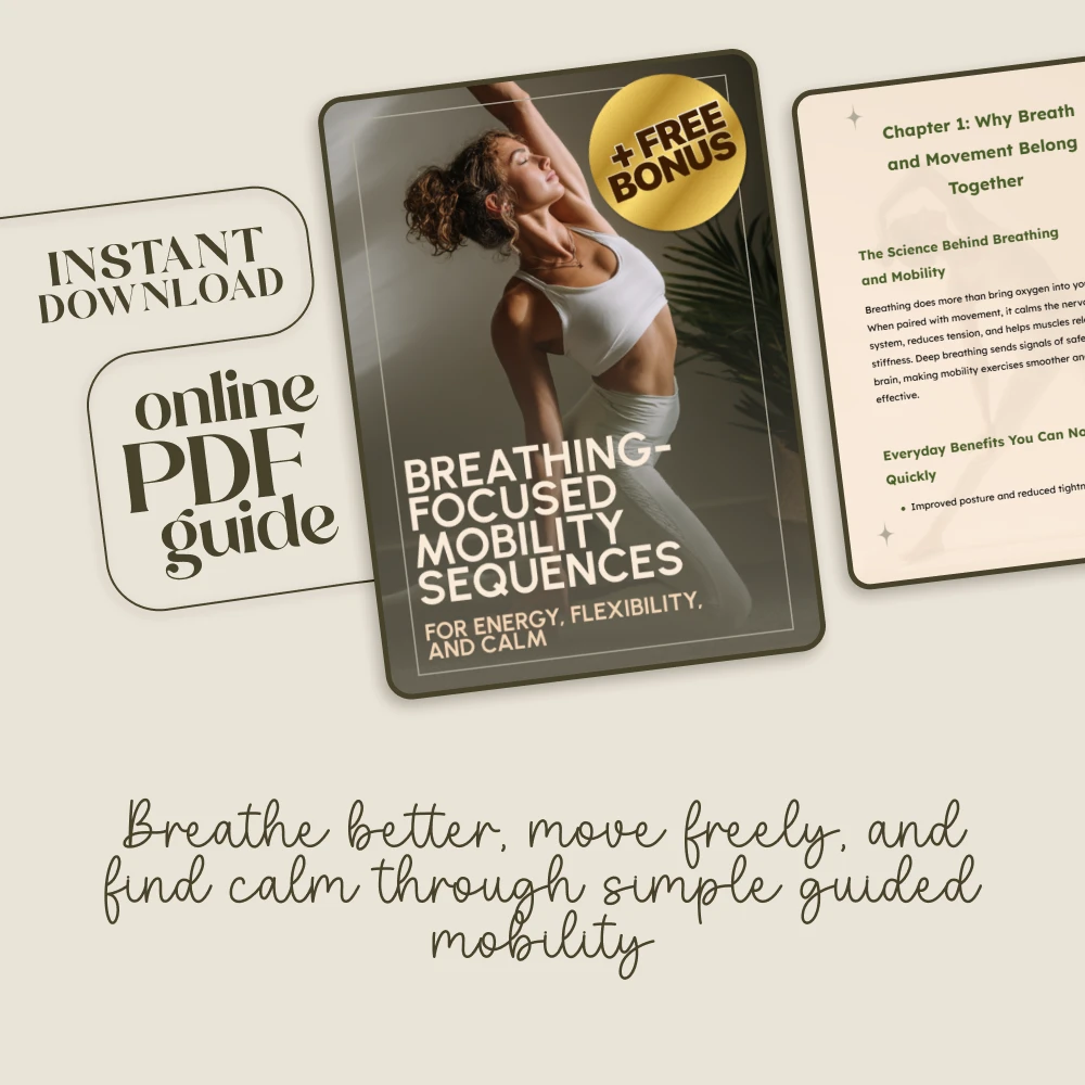 Download the Breathing-Focused Mobility Sequences for Energy, Flexibility, and Calm today and begin transforming your routine into a mindful practice of movement, breath, and renewal. Experience the difference within days — more energy, more ease, and a calmer, stronger you.