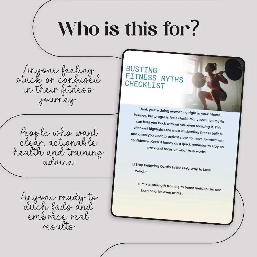 It’s time to stop second-guessing and start thriving. Keep the Busting Fitness Myths Checklist handy as your trusted companion on your health journey. Say goodbye to confusion, and hello to clarity, confidence, and results that last.