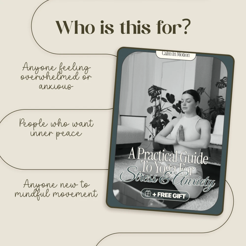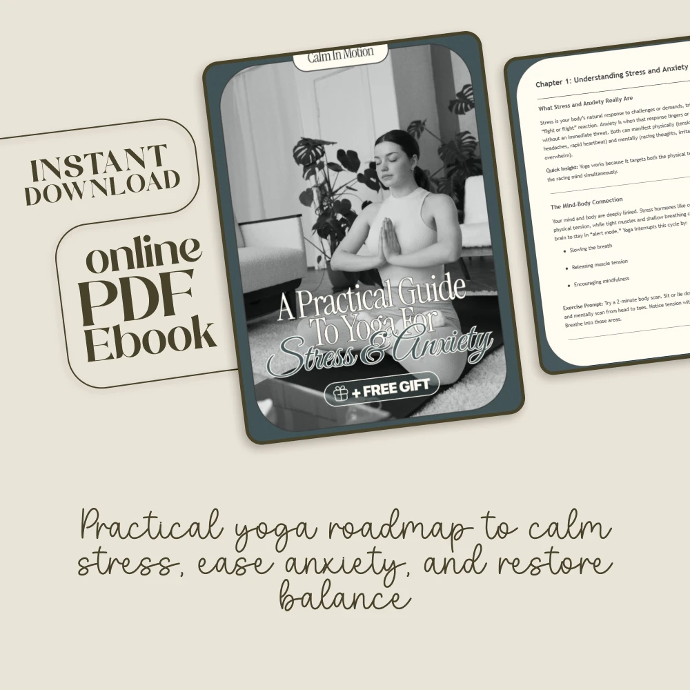 Bring serenity into your routine—download Calm in Motion: A Practical Guide to Yoga for Stress & Anxiety today and start your journey toward a more peaceful, balanced, and empowered you.