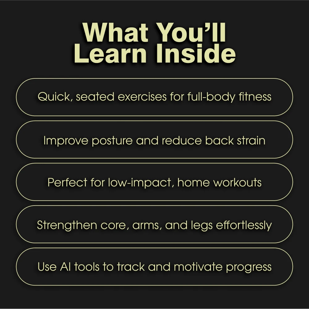 - Convenient and Accessible Workouts: Stay active anywhere, anytime, with exercises that require nothing but a chair.