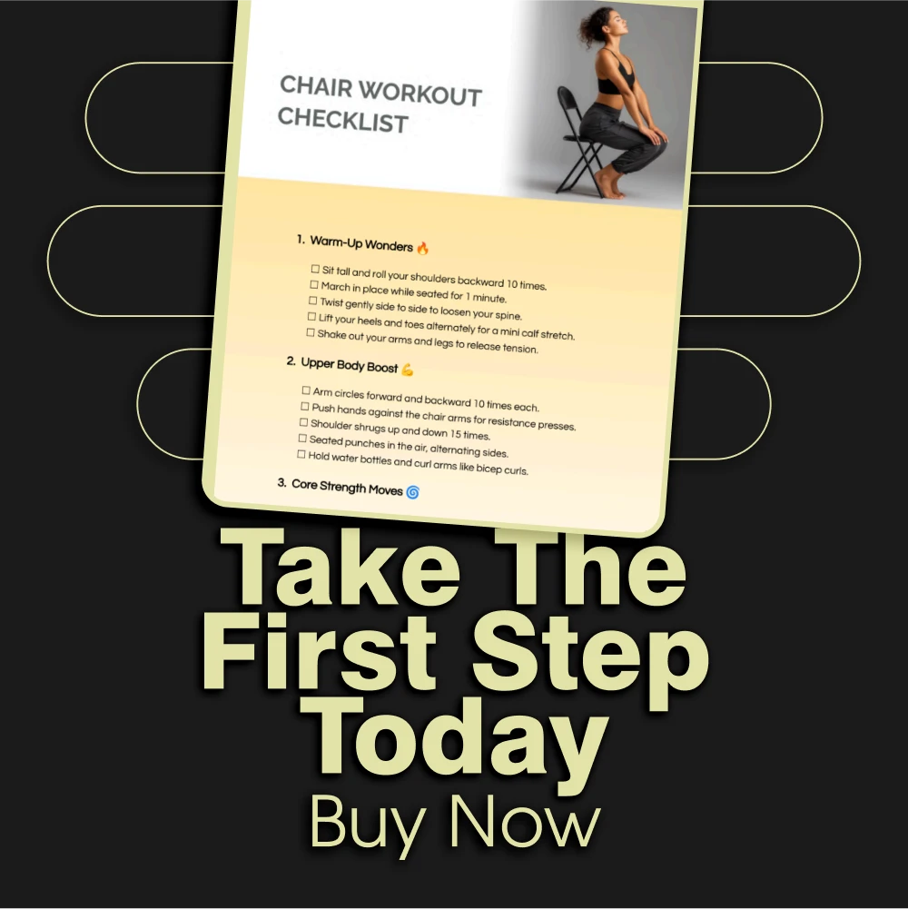 Don’t wait—start improving your fitness and energy levels today! Download the Chair Workout Checklist and get started on your path to better health, all without leaving your chair. Whether you’re working from home, in the office, or simply relaxing, this guide will help you stay active and feeling great. Purchase your copy now and take the first step toward a stronger, more flexible you!