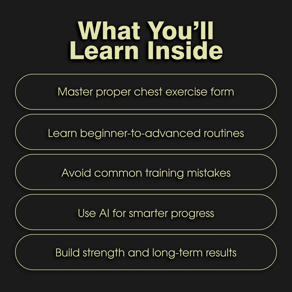 Unlike generic workout guides, Chest Workouts Unlocked combines expert training science with practical application, real transformation case studies, and innovative AI tools to personalize your progress. You’re not just learning exercises—you’re gaining a system to build strength, improve aesthetics, and stay motivated long-term.