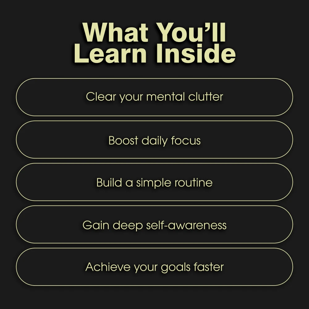 If you are tired of feeling distracted and mentally cluttered, it is time to take action. This guide provides the exact structure and inspiration you need to build a powerful journaling habit that sticks. You get immediate, lifetime access to a proven framework for mental clarity. Stop struggling with a foggy mind and start writing your way to peace and productivity.