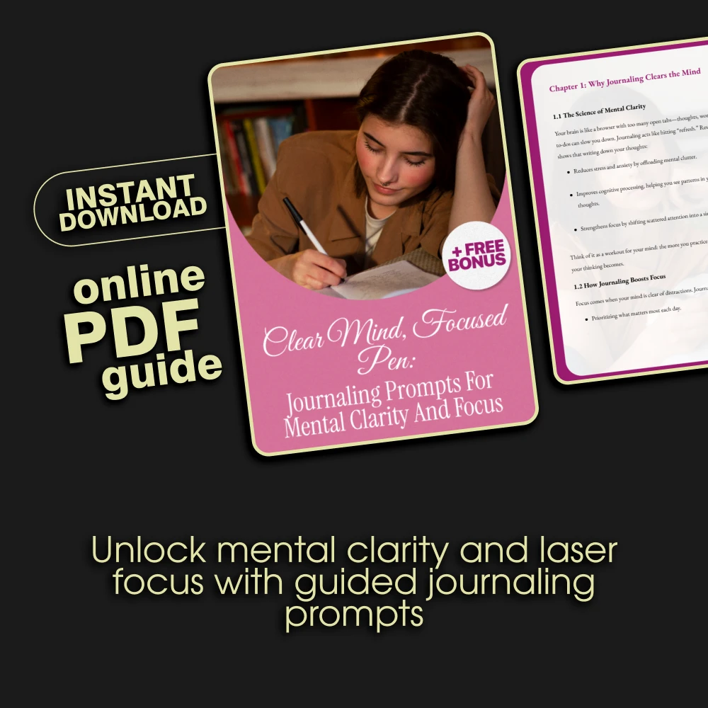 15 reviews for Clear Mind, Focused Pen: Journaling Prompts for Mental Clarity and Focus | Digital Download Guide for Inner Peace & Productivity | Self-Care Journal Prompts