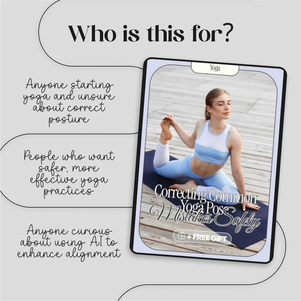 Unlike other digital yoga resources, this guide blends traditional yoga alignment wisdom with modern technology by including practical ways to use AI in your practice. It’s crafted for real people—beginners who want confidence on the mat and instructors looking for a reliable teaching aid. With clear instructions, highlights, and examples, it’s more than an eBook—it’s your personal yoga mentor in digital form.