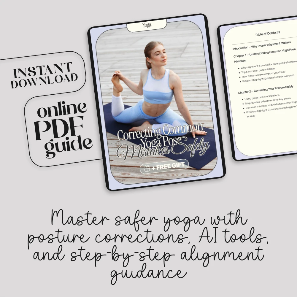 Discover how to elevate your yoga practice with Correcting Common Yoga Pose Mistakes Safely, a comprehensive digital download designed for yoga beginners, enthusiasts, and instructors. This easy-to-follow eBook is your guide to better alignment, safer poses, and a smarter yoga routine. Whether you’re new to yoga or want to refine your posture, this resource gives you clear, practical solutions to avoid common mistakes that can lead to discomfort or injury while making your practice more effective and enjoyable.