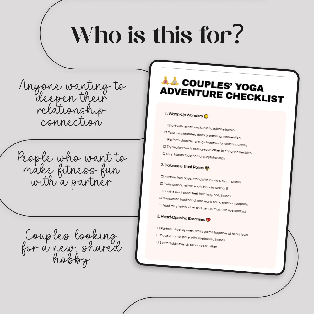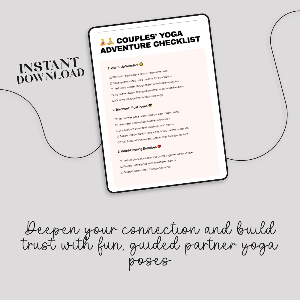 Click “Add to Cart” now to download your Couples’ Yoga Adventure Checklist and turn your next date night into an unforgettable experience!
