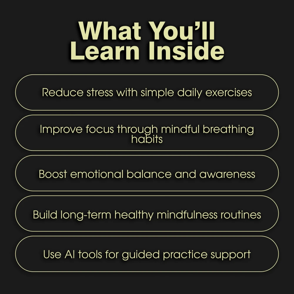 This ebook is perfect for anyone ready to reduce stress, improve focus, and bring balance to their daily life. Beginners will find clear, step-by-step guidance, while experienced practitioners will discover fresh insights and new techniques—especially through the integration of AI for guided mindfulness.