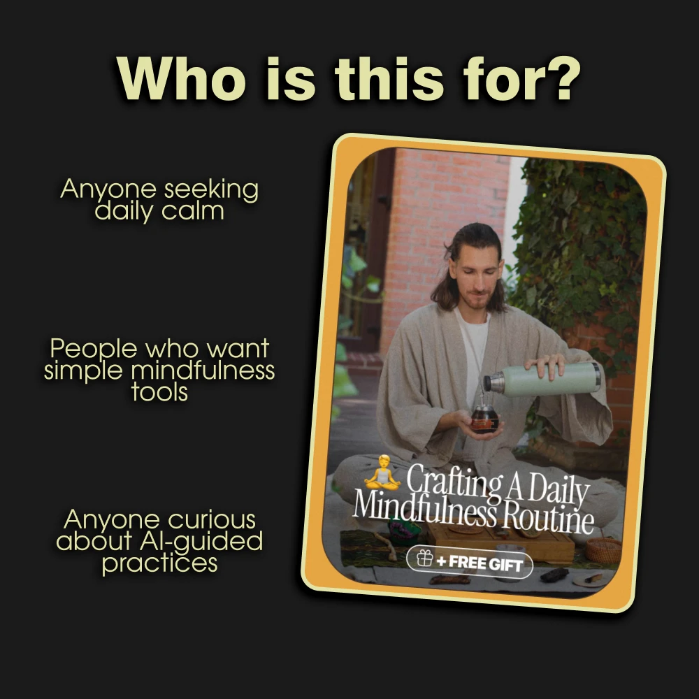 Unlike other guides, Crafting a Daily Mindfulness Routine combines timeless practices with modern AI-powered prompts and tools. You’re not just reading about mindfulness—you’re given practical strategies to implement it consistently, even on your busiest days.