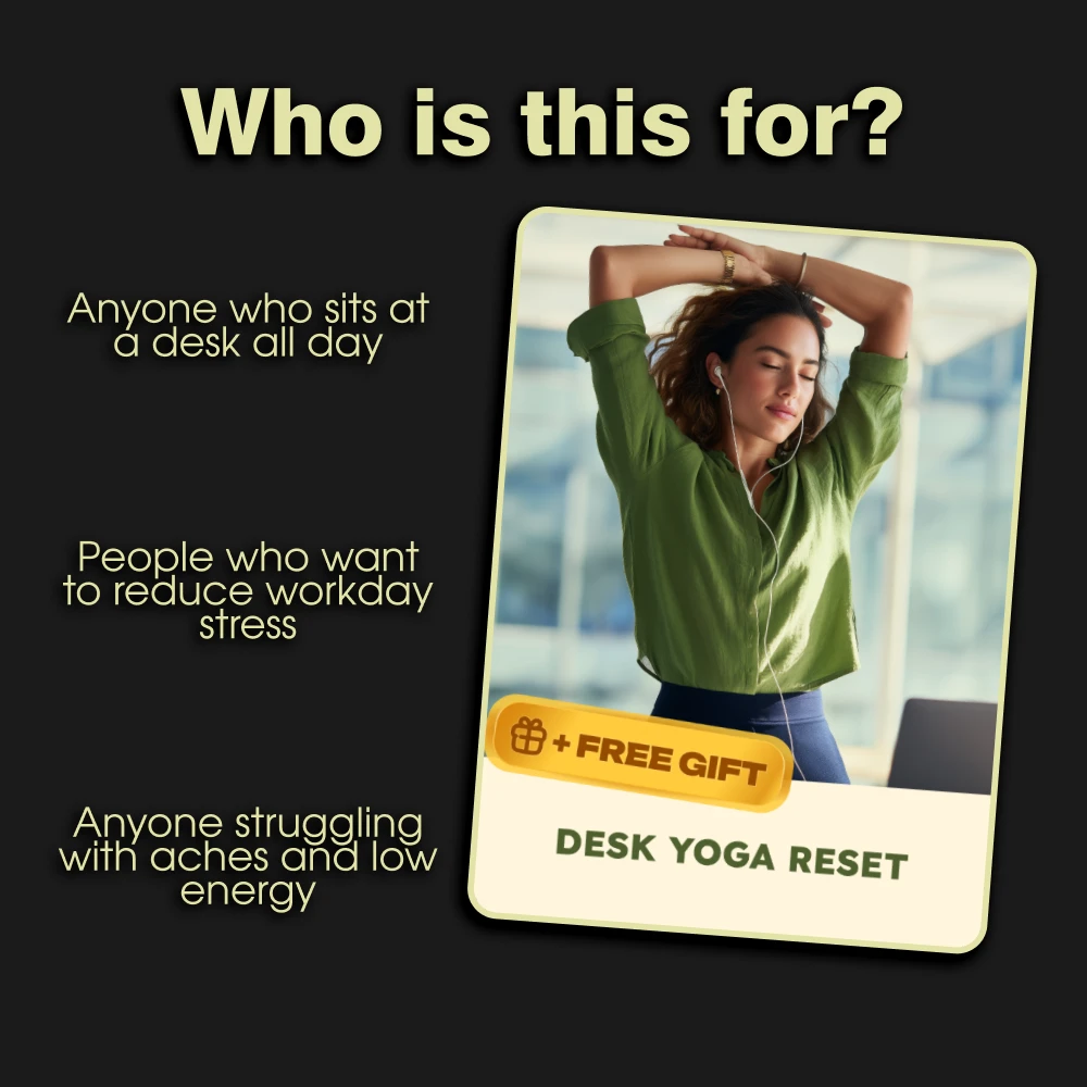 You have two choices: continue battling stiffness, fatigue, and distraction, or take a small, powerful step toward a workday filled with focus, comfort, and vitality. This digital guide is an instant download—no waiting for shipping. You can start your journey toward better desk yoga for focus and posture in the next five minutes.