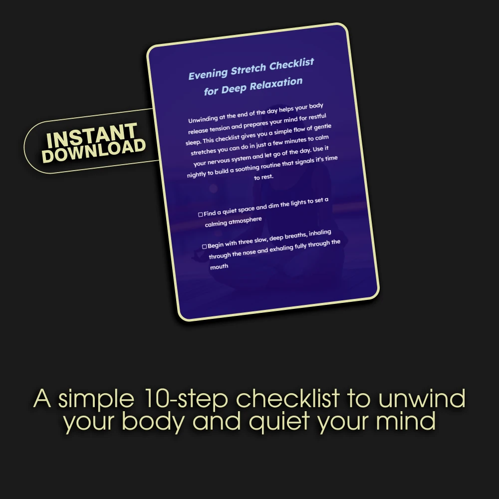 Be the first to review “Evening Stretch Checklist for Deep Relaxation | Digital Download | Guided Nightly Stretches for Stress Relief & Better Sleep”