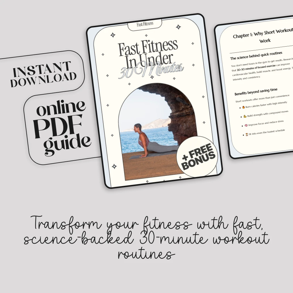 Pressed for time but still want results? Fast Fitness in Under 30 Minutes is your go-to digital guide for building a fitness routine under 30 minutes that actually works. This comprehensive, easy-to-follow resource helps you maximize every minute with smart strategies, science-backed workouts, and real-life success stories — no gym required. Whether you’re a busy professional, student, or parent, this guide empowers you to transform your health without sacrificing your schedule.