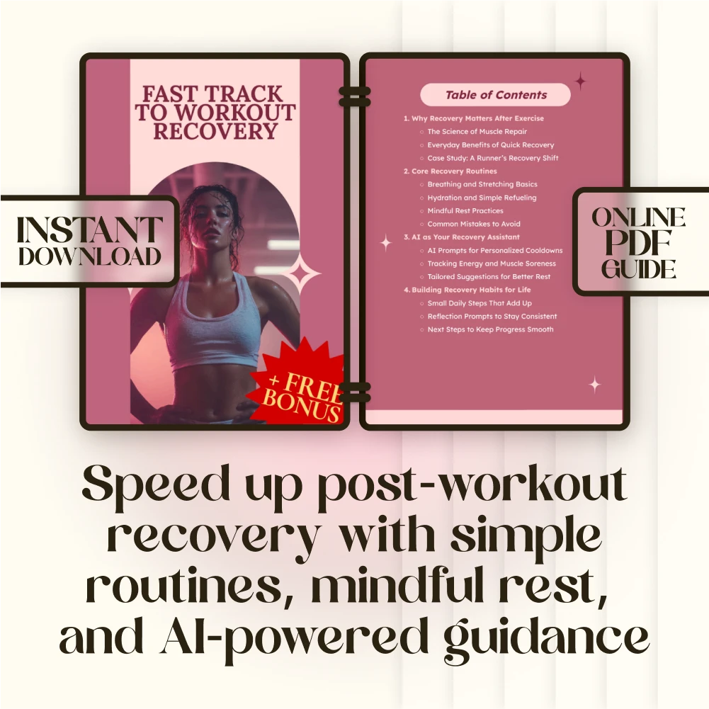 Unlike generic fitness advice, Fast Track to Workout Recovery blends proven recovery methods with smart AI integration, helping you create a routine that’s not only effective but also personalized to your needs. It’s more than a recovery guide—it’s your long-term companion for better performance, consistency, and overall well-being.