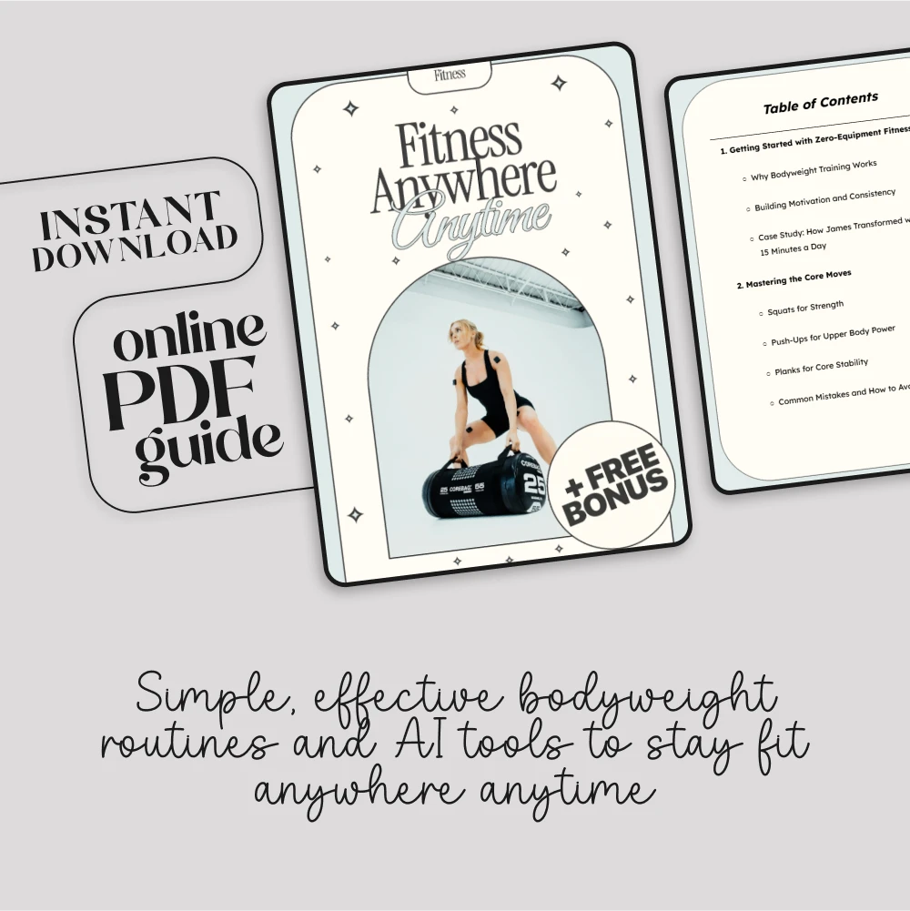 Get fit without a gym, without expensive gear, and without excuses. Fitness Anywhere Anytime is the ultimate digital guide designed for anyone who wants to start building strength and confidence using nothing but their own body. Perfect for busy schedules, small spaces, or those new to working out, this resource brings effective training right to your fingertips—no equipment required. With clear steps, motivational strategies, and AI-powered personalization, it’s your all-in-one roadmap to sustainable, long-term fitness.