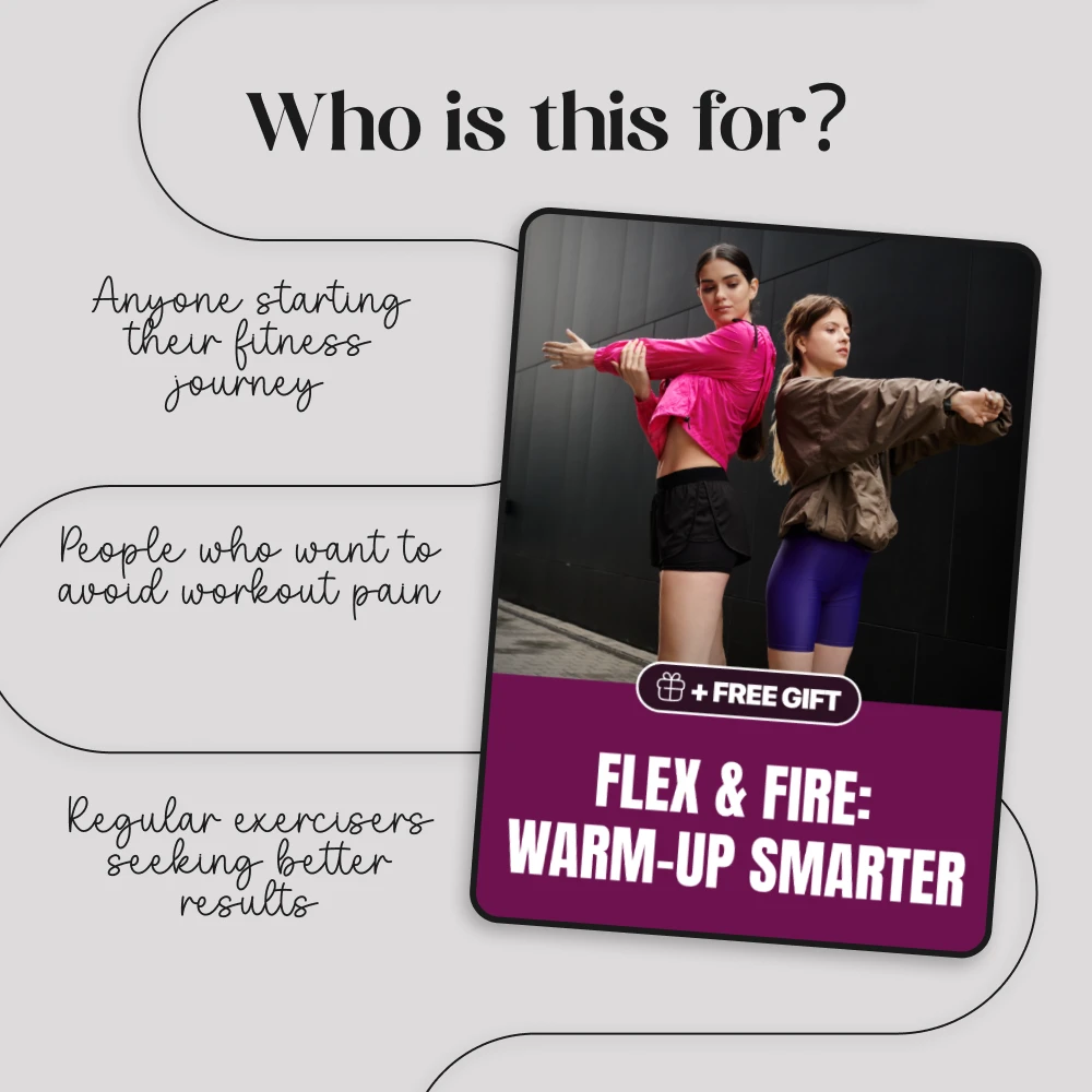 Don’t let a poor warm-up be the weak link in your fitness chain. Your journey to more resilient, powerful, and injury-free training starts right here. Click “Add to Cart” now to instantly download “Flex & Fire: Warm-Up Smarter” and unlock the secrets to warming up with confidence! Invest in your body today and feel the difference in every single workout.