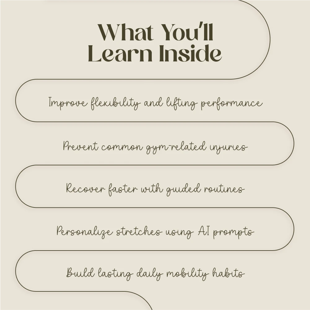 - AI integration: Exclusive prompts to help you create personalized stretching plans and stay accountable.