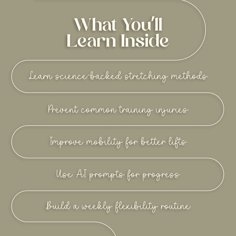 This guide is perfect for strength athletes, weightlifters, bodybuilders, CrossFitters, or anyone serious about enhancing performance with smarter flexibility training. Whether you’re just starting or looking to refine your training approach, this resource provides the tools to take your results to the next level.