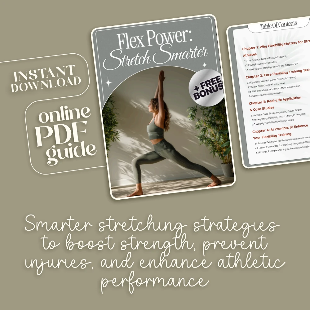Unlock your full athletic potential with Flex Power: Stretch Smarter 💪🧘, a comprehensive digital guide designed for strength athletes who want to maximize performance, prevent injuries, and move with greater efficiency. This step-by-step resource combines proven flexibility training methods with modern AI-powered tools, making it the ultimate companion for anyone serious about strength training and longevity in sports.