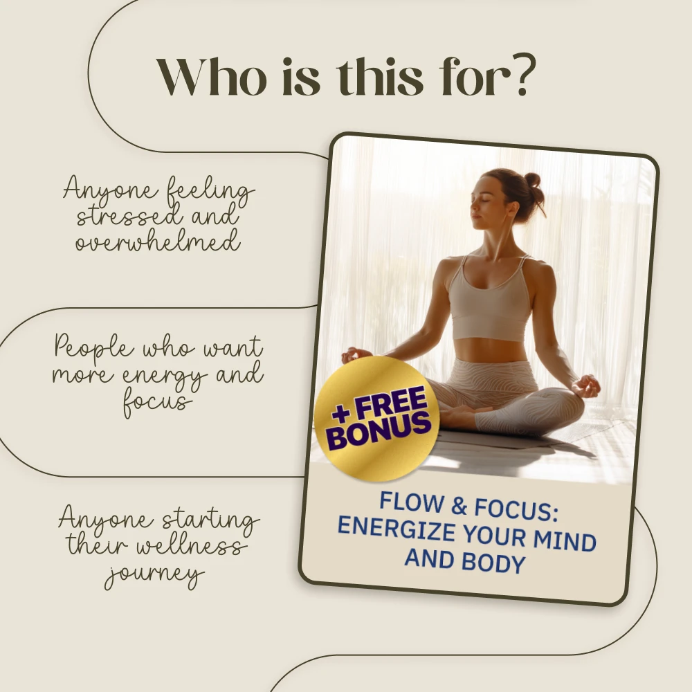 Stop choosing between moving your body and calming your mind. It’s time to unite them for a more energized, focused, and joyful life. With Flow & Focus, you have everything you need to begin a transformative practice that feels less like a duty and more like a gift to yourself.