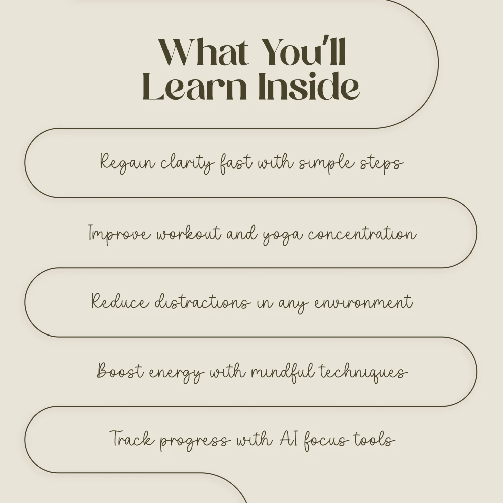Unlike generic focus tips, this checklist is tailored for mind-body practices and daily life routines. It’s structured for quick wins—so you can reset your focus in just minutes and carry that clarity through your entire workout or workday. If you’ve been wondering why can’t I focus and want a resource that combines mindfulness, movement, and even modern AI solutions, this is the perfect fit.