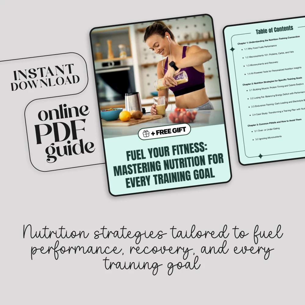 Whether you’re training to build muscle, lose fat, or improve endurance, your results depend on more than just your workouts—nutrition is the secret weapon that can make or break your progress. Fuel Your Fitness: Mastering Nutrition for Every Training Goal is a complete digital guide designed to help you understand how to pair nutrition with training goals so that every rep, run, and recovery session counts. With science-based insights, practical strategies, and modern AI-powered tools, this guide simplifies what can often feel overwhelming—making it easy to fuel your body for success.