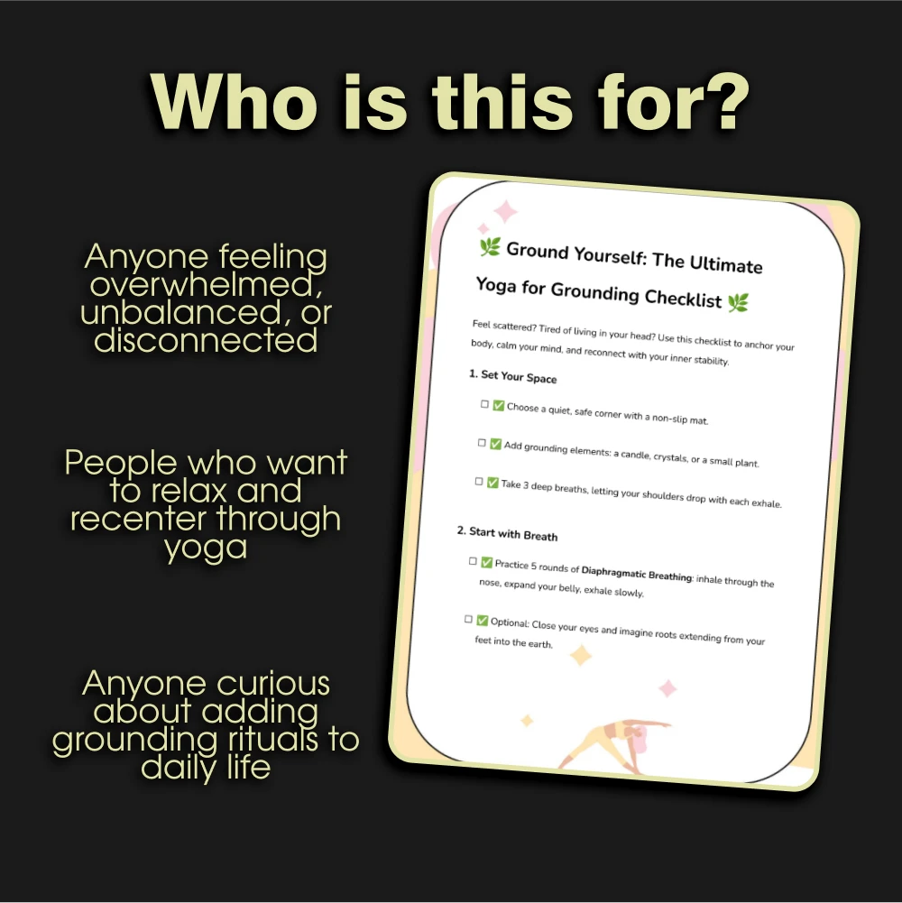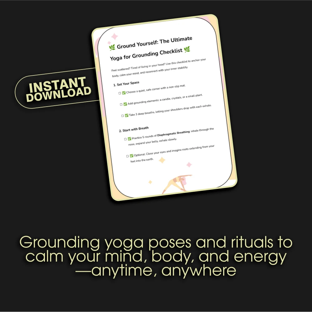 If you’re ready to feel more grounded, balanced, and connected, download “Ground Yourself: The Ultimate Yoga for Grounding Checklist” today. Whether you’re practicing at home or looking to deepen your yoga practice, this checklist is the perfect companion for cultivating a sense of peace and stability in your life.