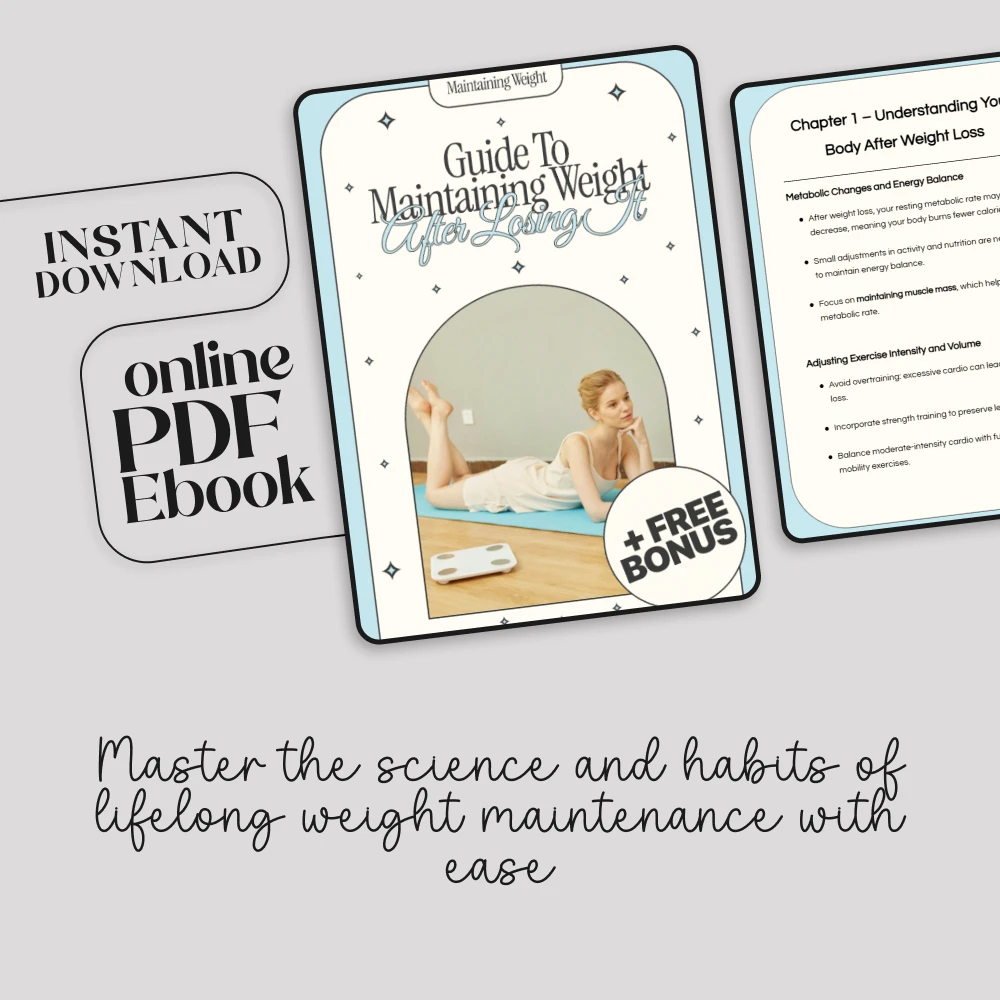 You’ve invested too much time, effort, and heart into your transformation to see it slip away. This digital guide is your key to locking in your results and stepping into a lifetime of confidence and health. It’s an instant download, so you can start building your maintenance strategy within minutes. Click ‘Add to Cart’ now and make your weight loss permanent today.
