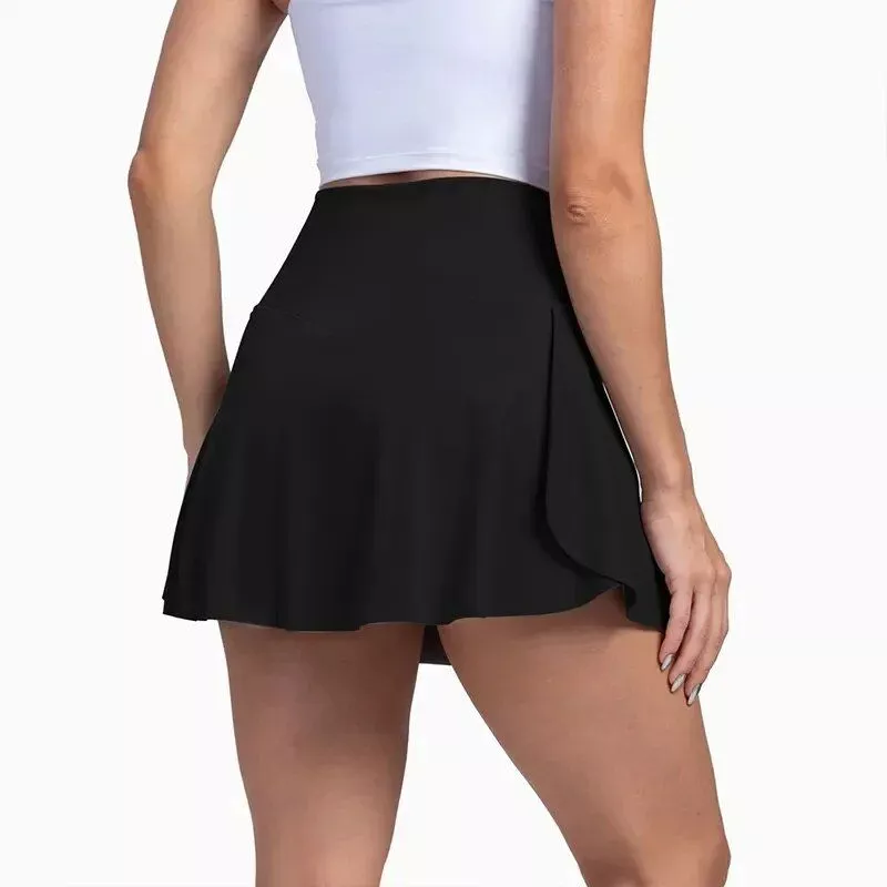 What sets this skort apart is its unique combination of fashion and functionality. The high waistline accentuates your figure, while the pleated design adds a playful twist to your athletic attire. The integrated shorts with convenient pockets provide practicality without compromising on style. Moreover, the breathable, lightweight fabric ensures you stay comfortable and confident, no matter the activity.