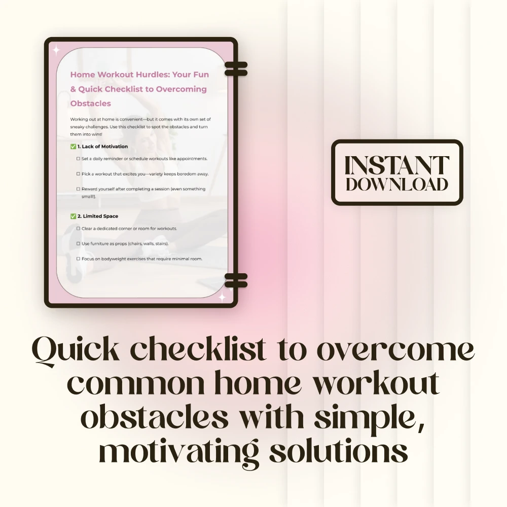 Don’t let small setbacks stop your progress. Download Home Workout Hurdles: Your Fun & Quick Checklist to Overcoming Obstacles now and transform your fitness journey from frustrating to rewarding. Your path to consistency, motivation, and real results starts here—grab your copy today and crush those hurdles with confidence!