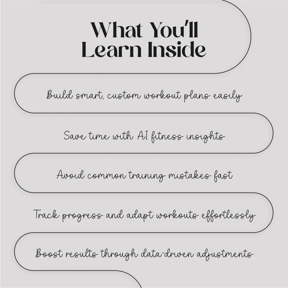 - Step-by-step guidance: Follow a clear roadmap from understanding AI to mastering your personalized workout plan.