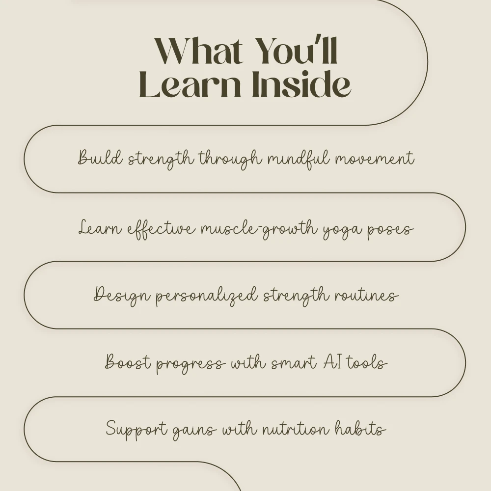 This guide is perfect for anyone seeking a holistic approach to fitness — yogis wanting to gain muscle, fitness enthusiasts curious about yoga’s strength potential, and beginners looking for a low-impact yet powerful way to transform their bodies.