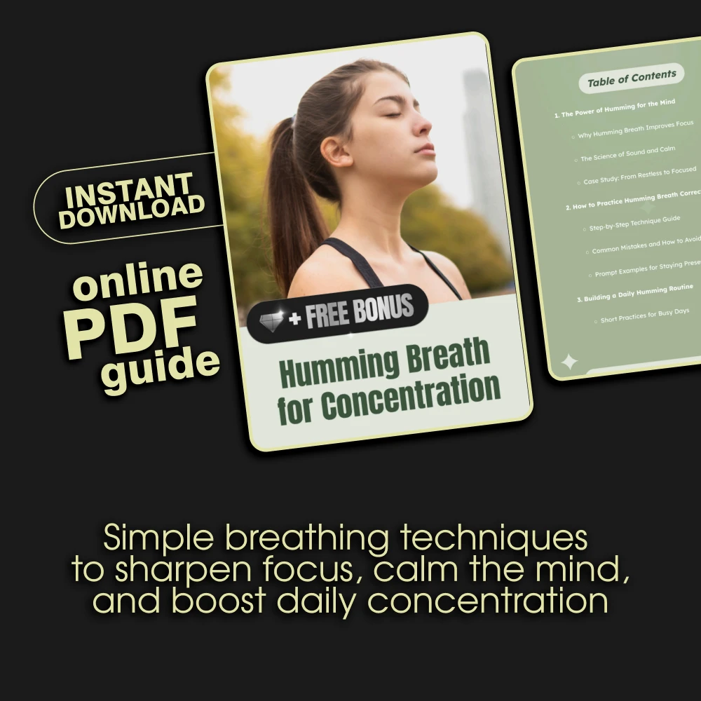 This guide goes beyond generic breathing tutorials by combining time-tested techniques with modern AI support, ensuring you not only learn humming breath for concentration but also apply it consistently in your daily life. It’s ideal for students, professionals, or anyone who struggles with distraction and needs a practical tool to reset their focus in minutes. Unlike other resources, this one integrates technology, prompts, and real-world examples for a truly supportive journey.