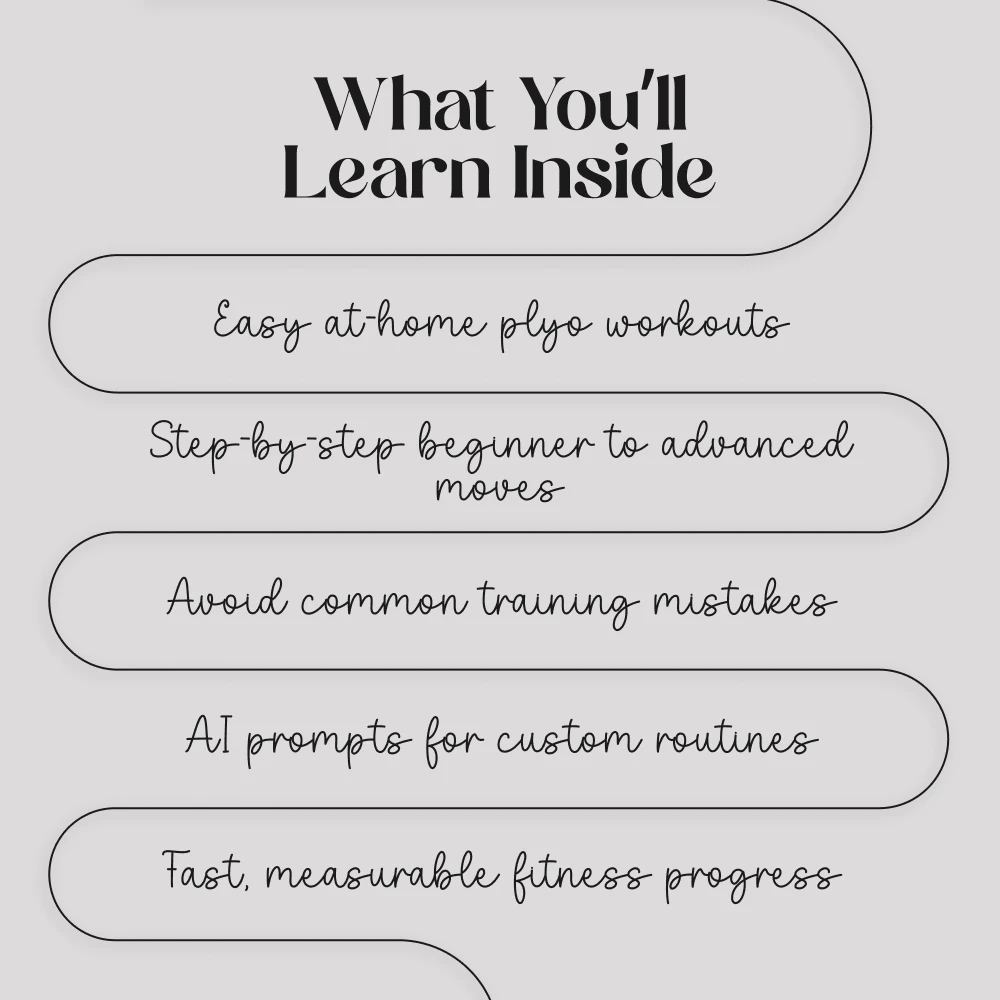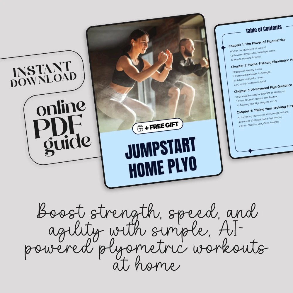 This guide is perfect for fitness enthusiasts, athletes, and anyone wanting to improve their strength, agility, and speed through plyometric workouts you can do at home. Beginners and advanced trainees alike will benefit from its structured approach and AI integration.