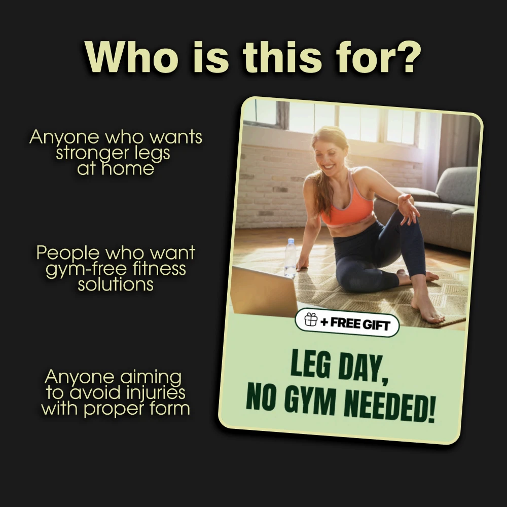 This eBook is amazing 🙌 No more skipping leg day because of crowded gyms or expensive memberships. Now I can train anytime, anywhere—right from home! Plus, it’s suitable for all fitness levels which is great cause I’m still a beginner 😊