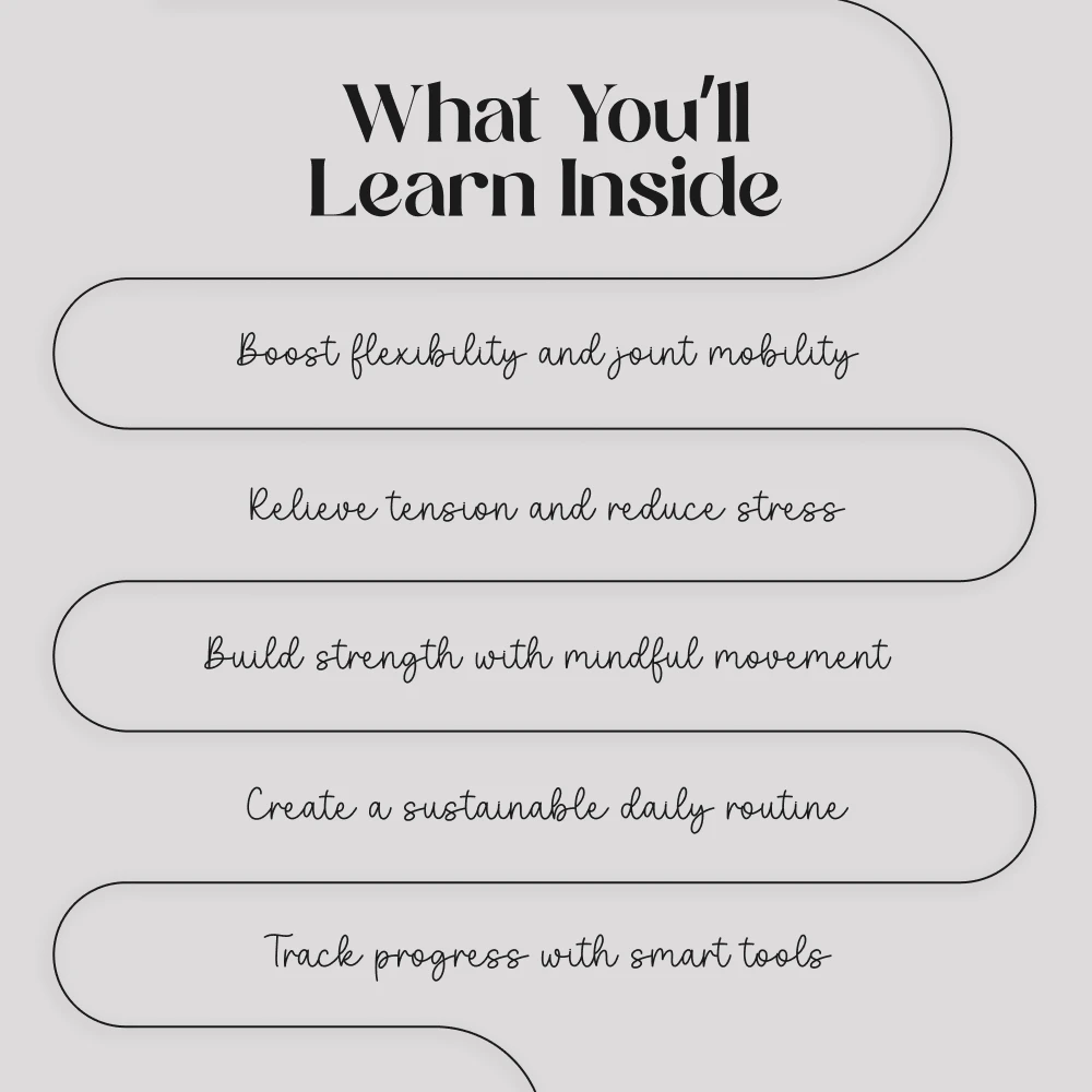 - Chapter 4: Build a sustainable stretching routine with weekly structures, consistency tips, and next-step guidance.