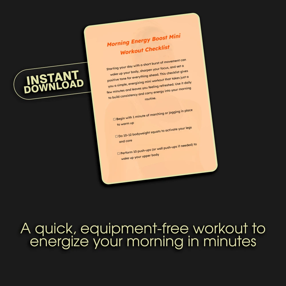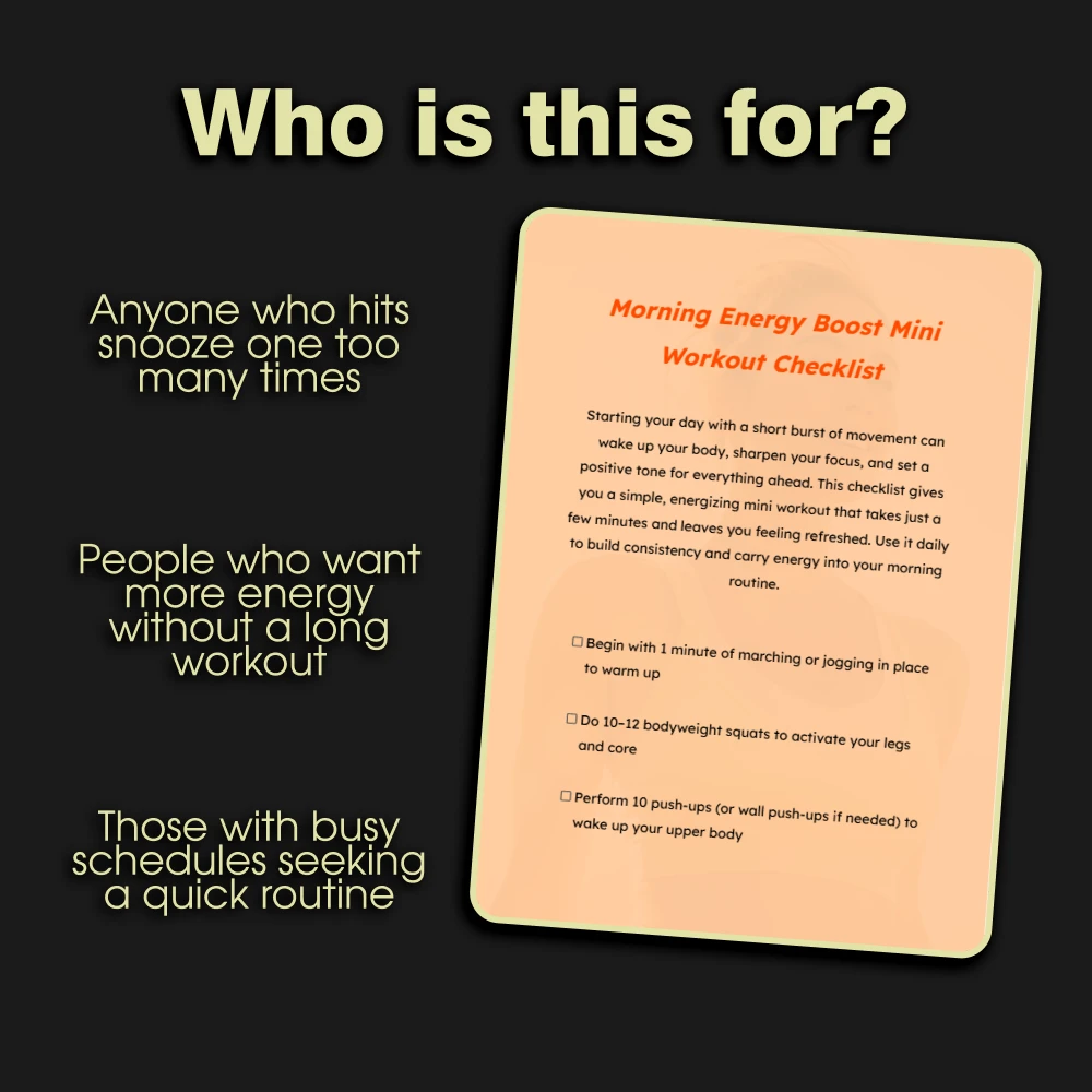 You might be wondering what makes this different from a random workout video online. This checklist is designed for action, not overwhelm. It cuts through the noise and provides a crystal-clear sequence of effective morning mini workouts for energy. It’s perfect for busy professionals, parents, students, or anyone who has ever said, “I don’t have time to workout.” The built-in reflection at the end is a game-changer—it helps you notice and appreciate the positive shift in how you feel, reinforcing the habit and proving its value every single day.