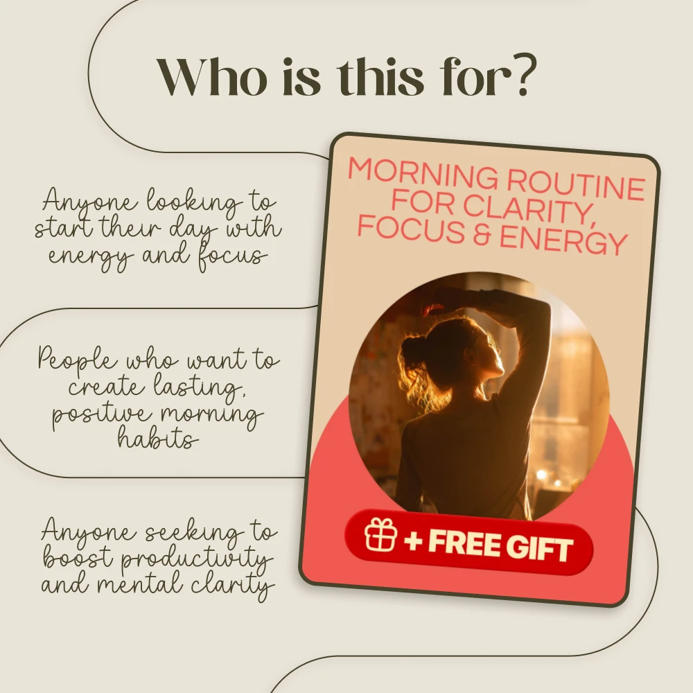 Perfect for busy professionals, students, or anyone wanting to get the most out of their mornings, this digital download will help you take control of your mornings and transform them into a source of power. Download the “Morning Routine for Clarity, Focus & Energy” guide now and start your journey towards better productivity, better focus, and better days.