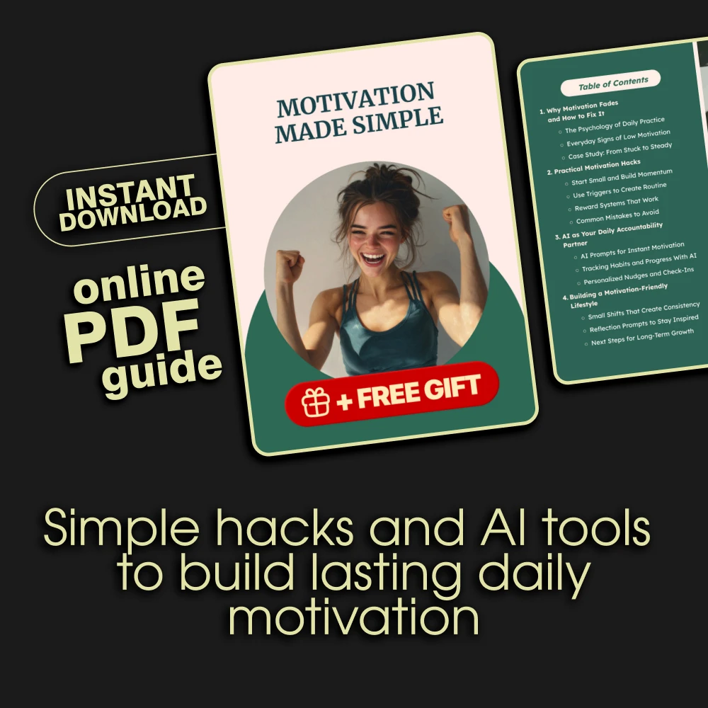 Unlike generic self-help resources, Motivation Made Simple combines psychology, practical hacks, and AI-powered accountability to give you a complete system for lasting motivation. It’s easy to follow, actionable, and designed to fit into real life without overwhelm.
