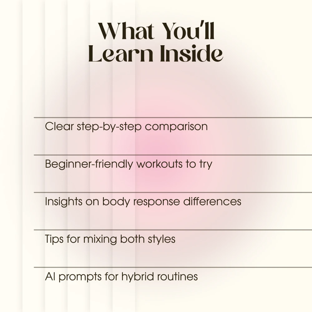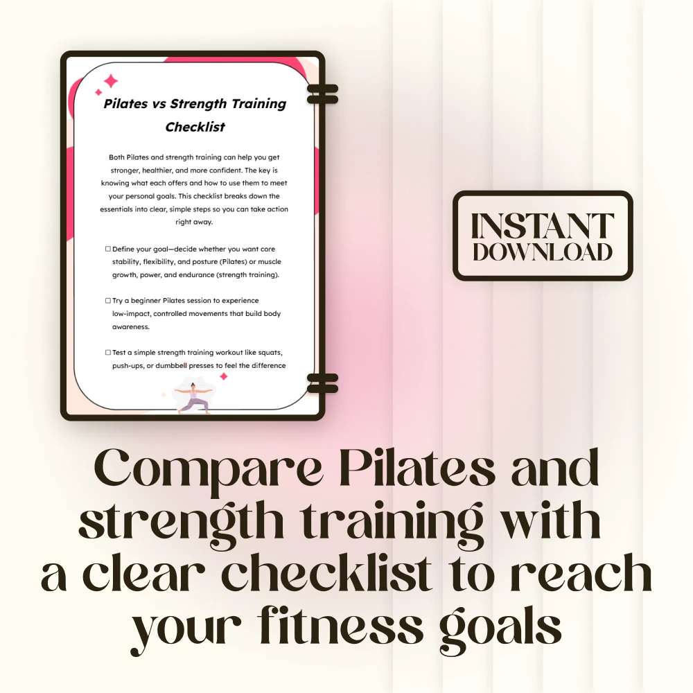 Unlike general fitness guides, this checklist makes it easy to compare Pilates vs strength training in one place. It’s practical, easy to follow, and designed for real life. Whether you’re a beginner curious about where to start or someone who wants to blend both methods, this digital resource breaks everything down into actionable steps you can use immediately.