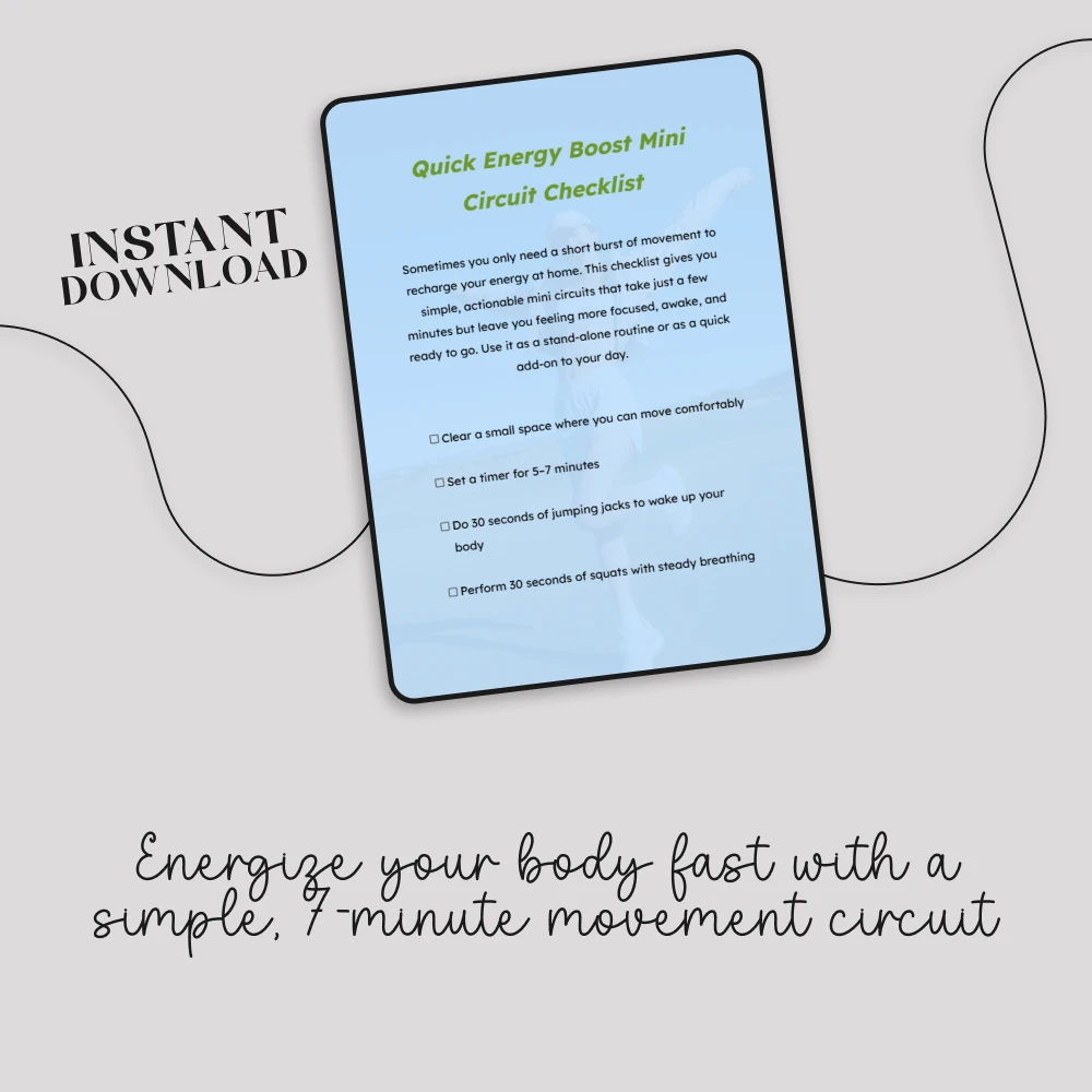 Don’t let low energy slow you down. Download the Quick Energy Boost Mini Circuit Checklist now and start your journey to daily movement, renewed focus, and lasting motivation. Keep it on your phone, tablet, or print it out for easy access—your 5-minute energy fix is only a click away!