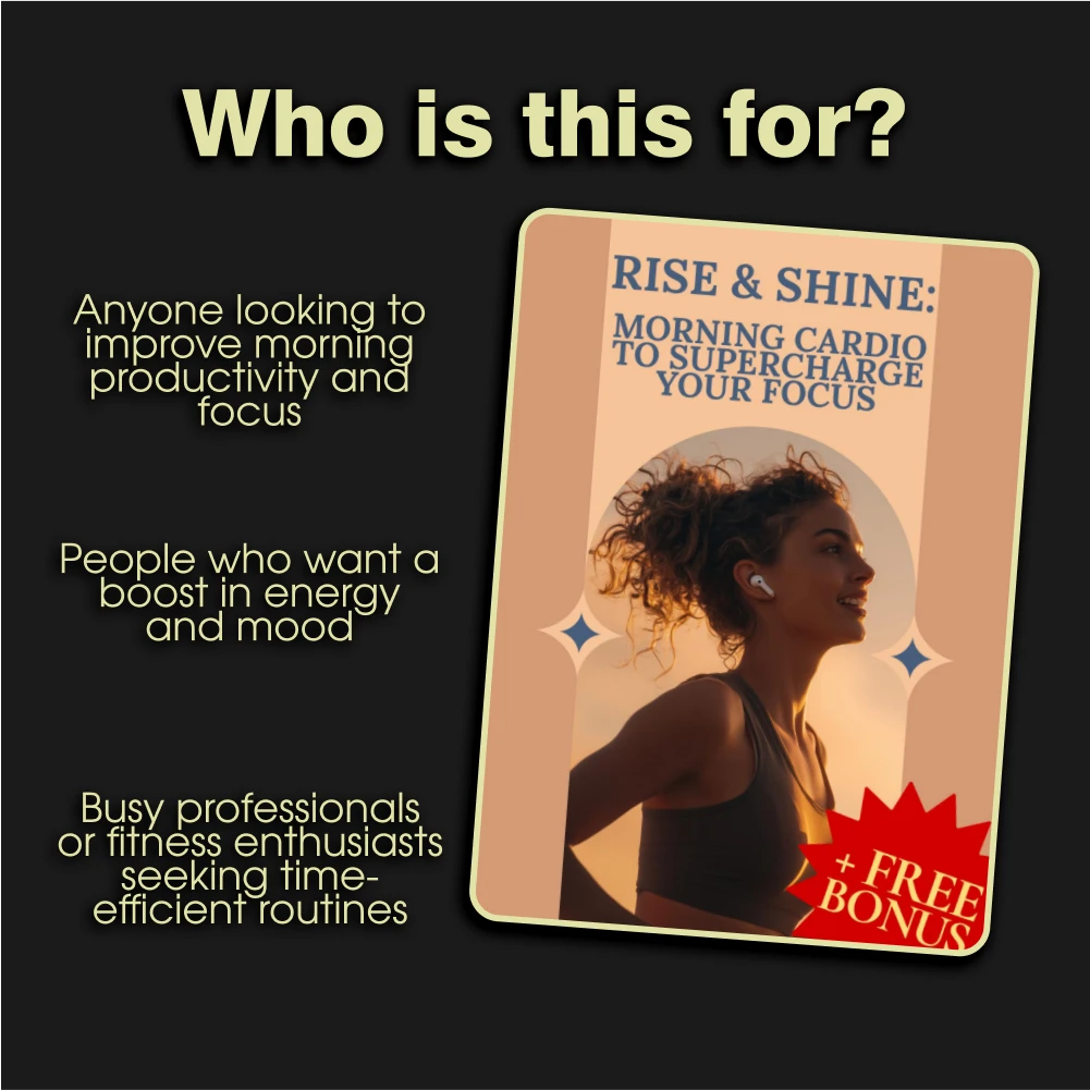 If you’re ready to unlock the power of morning cardio and boost your productivity, focus, and mood, download your copy of Rise & Shine: Morning Cardio to Supercharge Your Focus today! Start your mornings strong and make each day your most productive yet.