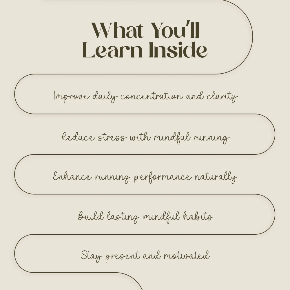 This eBook is perfect for runners, professionals, students, and anyone looking to sharpen their focus while enhancing both physical and mental well-being. Unlike generic running guides, this resource combines mindfulness, science, and practical steps into one easy-to-follow format—giving you a balanced approach to mind-body connection.